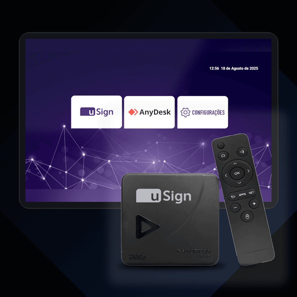 Box e sistema afinados para operar com o uSign: inicia rápido, roda sem travar, e usa cache local para manter a fluidez mesmo sem internet.